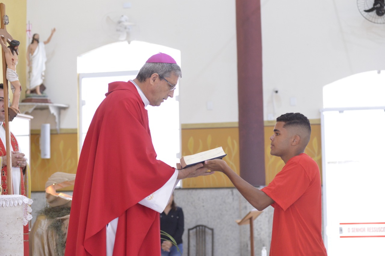 Dom José Carlos utilizou um algodão de cotonete para ungir os crismados, seguindo as recomendações dos protocolos impostos pela pandemia. Neste semestre, a realização dos sacramentos de iniciação cristã como batismo, crisma e comunhão movimentam a Diocese de Caraguatatuba. A próxima Crisma deve acontecer em 30 de outubro na Paróquia Santa Rosa de Lima.