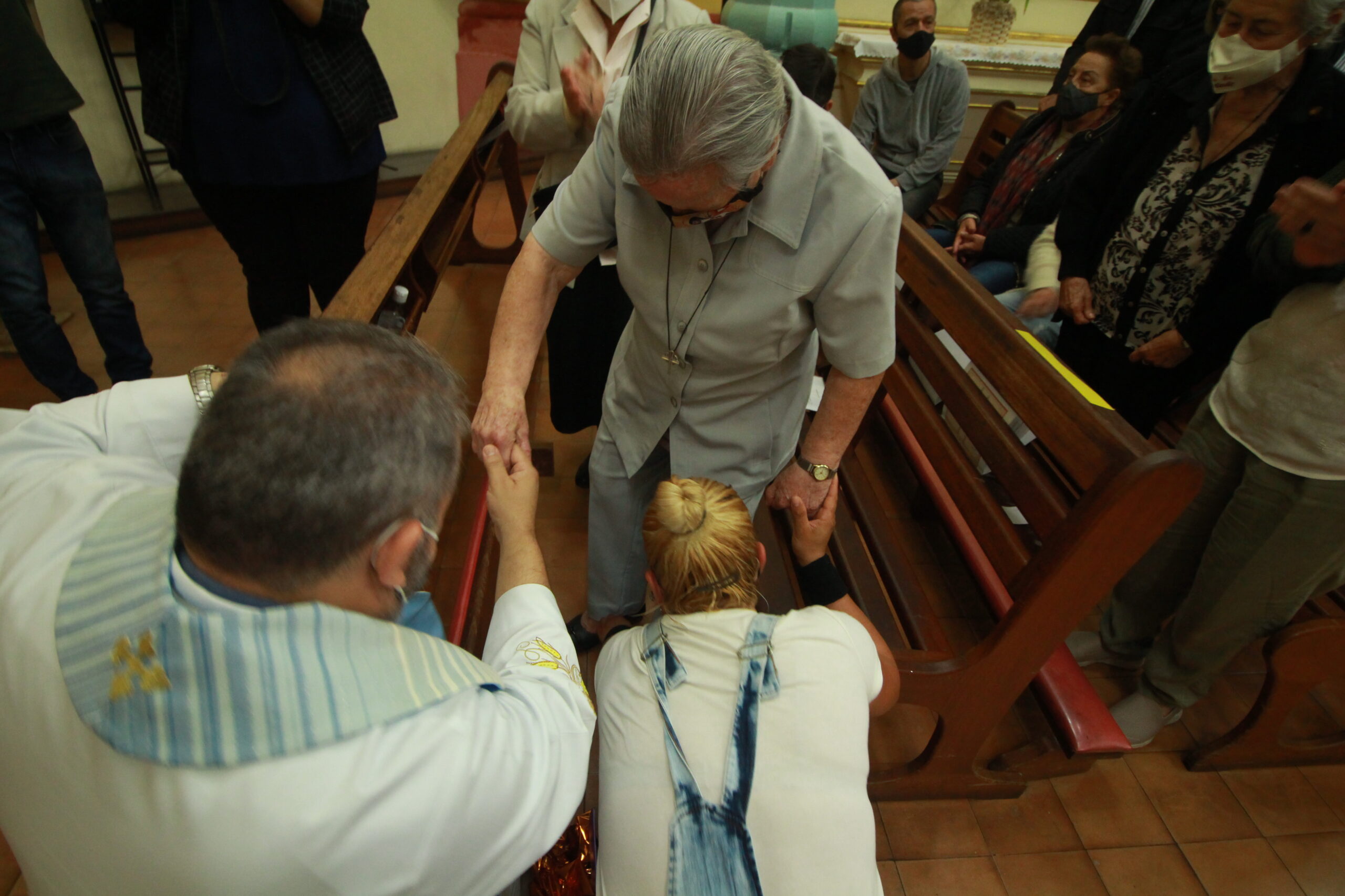 Durante a celebração, uma ex-prostituta que encontrou a conversão após ser atendida pela irmã calçou um sapato nela, como um gesto de agradecimento de toda comunidade pelas quatro décadas de serviço e dedicação à obra do Senhor.