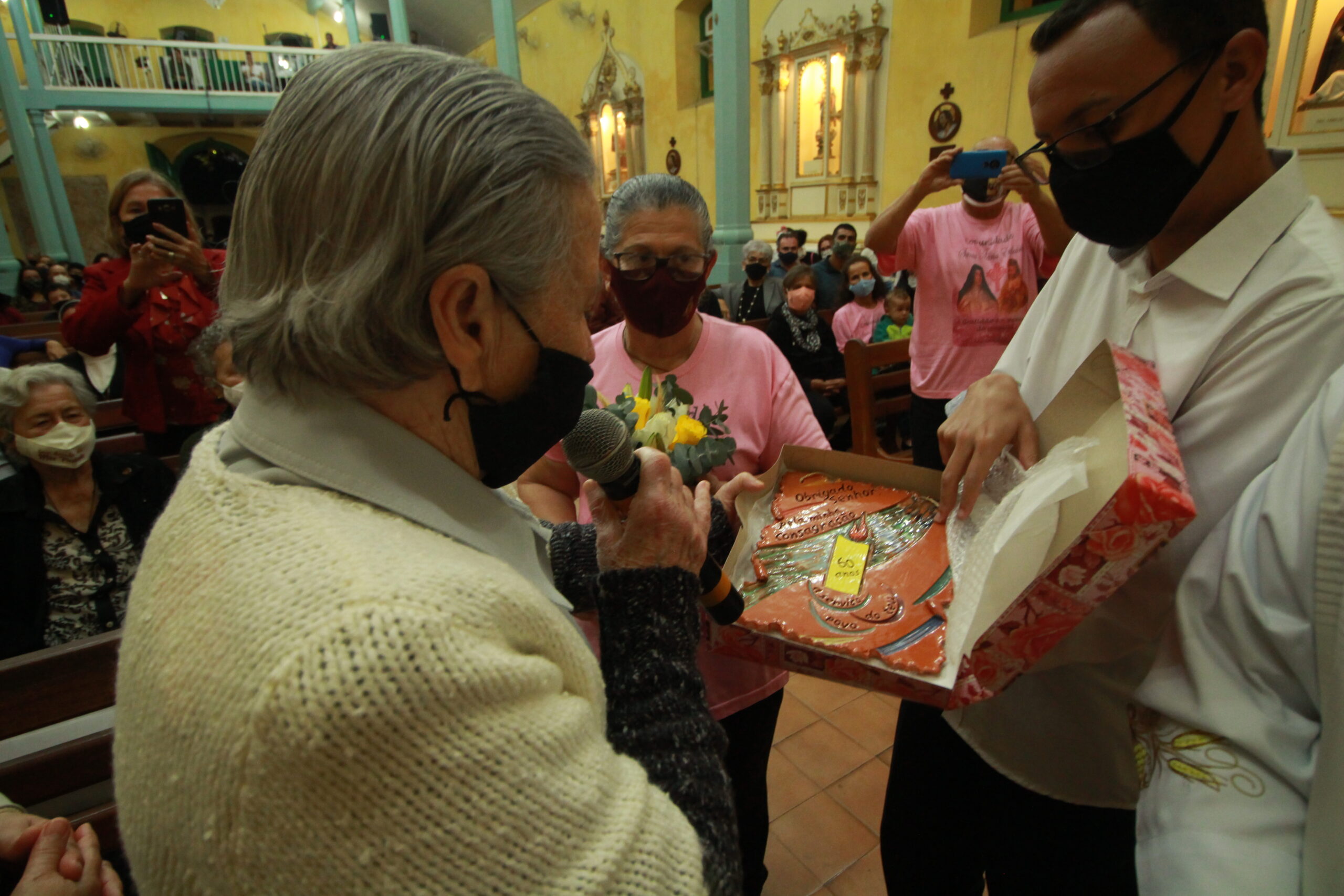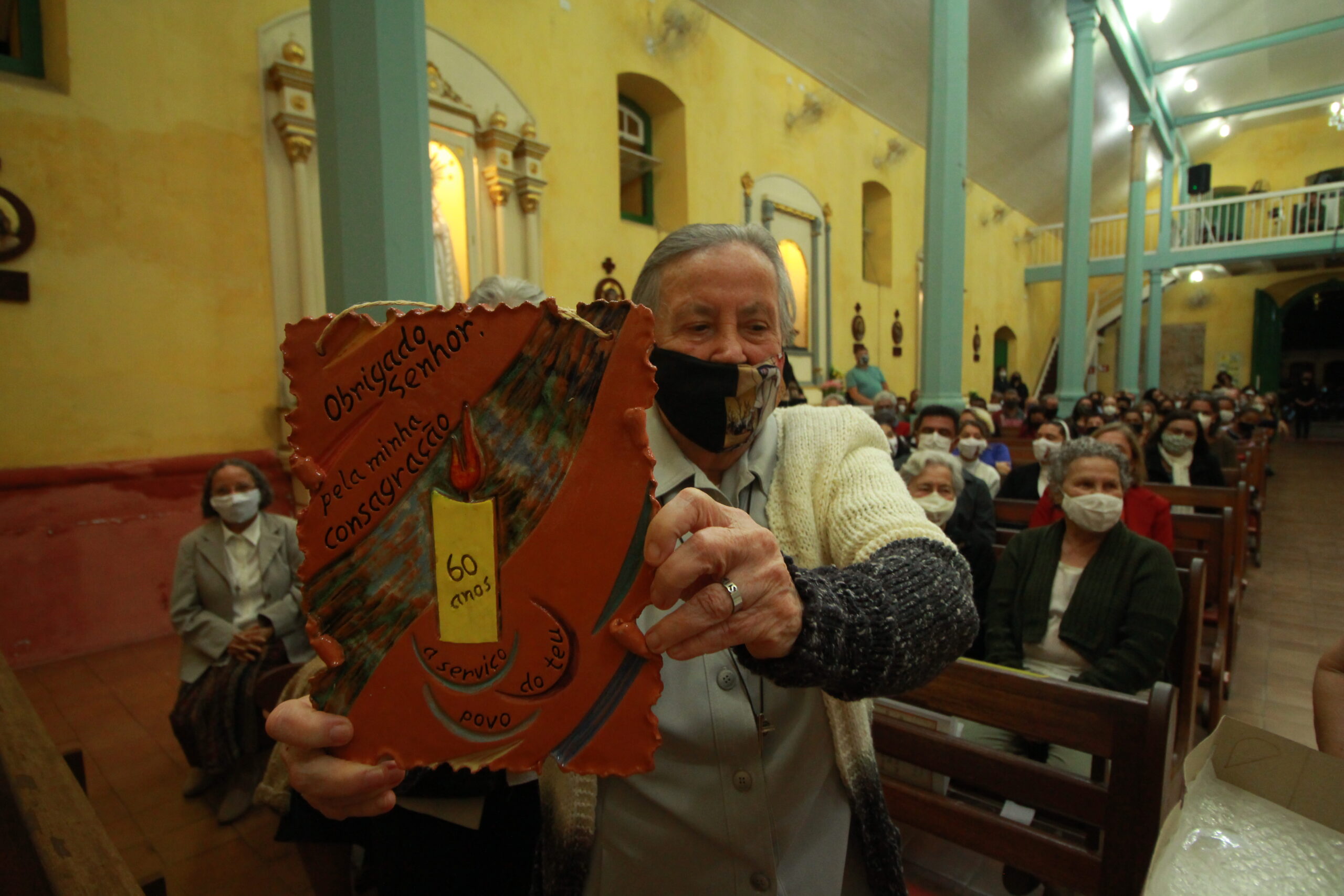 “Meu coração está cheio de alegria e gratidão. São 60 anos passados na casa do Senhor, que me chamou, me deu o seu nome ‘Irmã Maria do Coração de Jesus’, que é uma faculdade, um programa de vida”, disse ela em seu discurso de agradecimento.