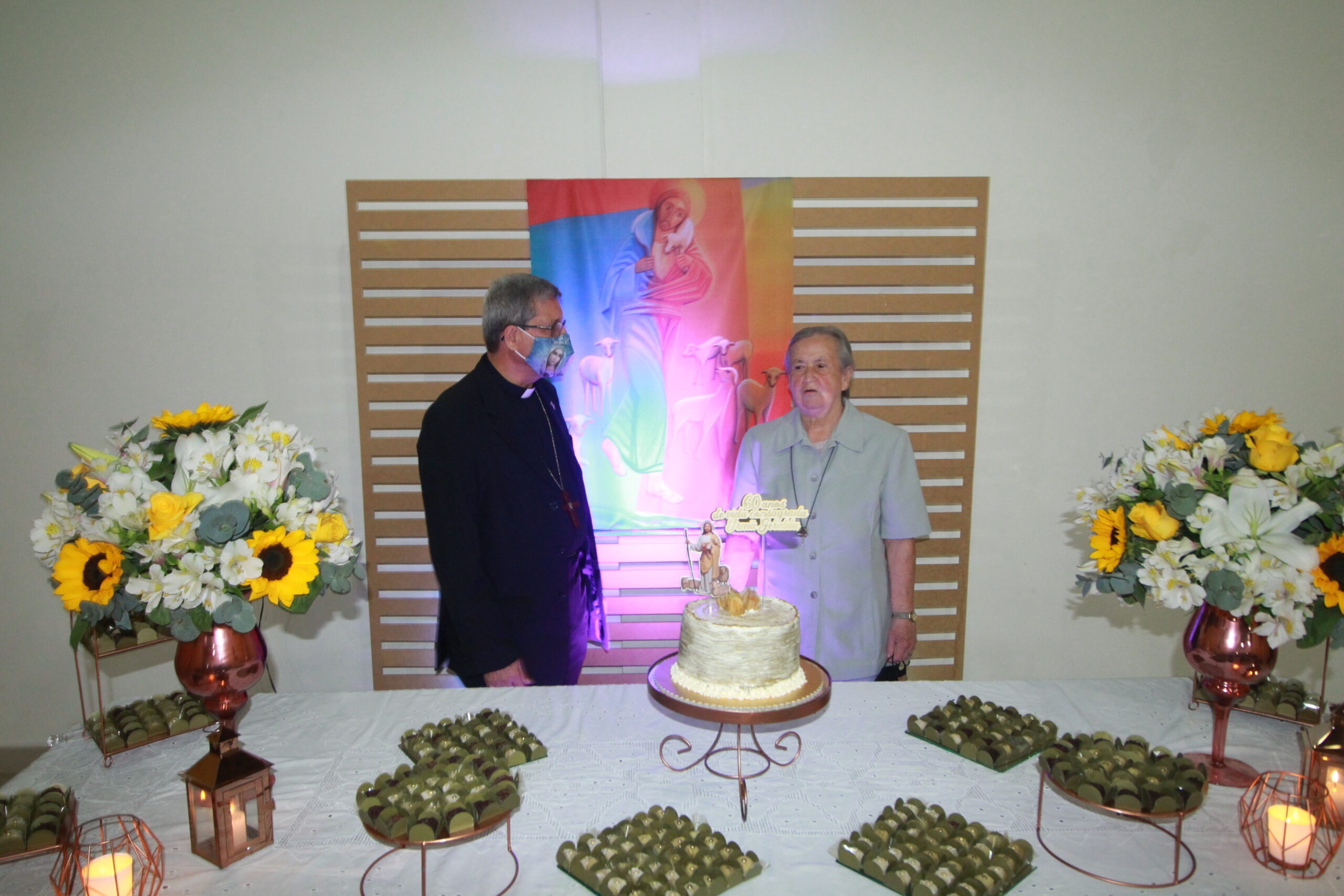 A irmã Maria Geralda emocionou a todos com seu discurso. “ Sai da tua terra, da casa de teus pais e vem para o lugar que eu ei de te mostrar (Gn 12,1). Eu tinha 18 anos quando ouvi isso e ouvi, Senhor. Confiei no seu chamado, e vim com muita alegria servir os passos do Bom Pastor. Hoje minha vida é a própria felicidade. Tu és um Deus fiel. Após 60 anos do meu voto de obediência, eu te encontro a cada passo, cumprindo a tua vontade. No meu voto de pobreza és o meu tesouro. No meu voto de castidade, estou ligada a Ti pelo mais belo amor por toda a eternidade”, concluiu.