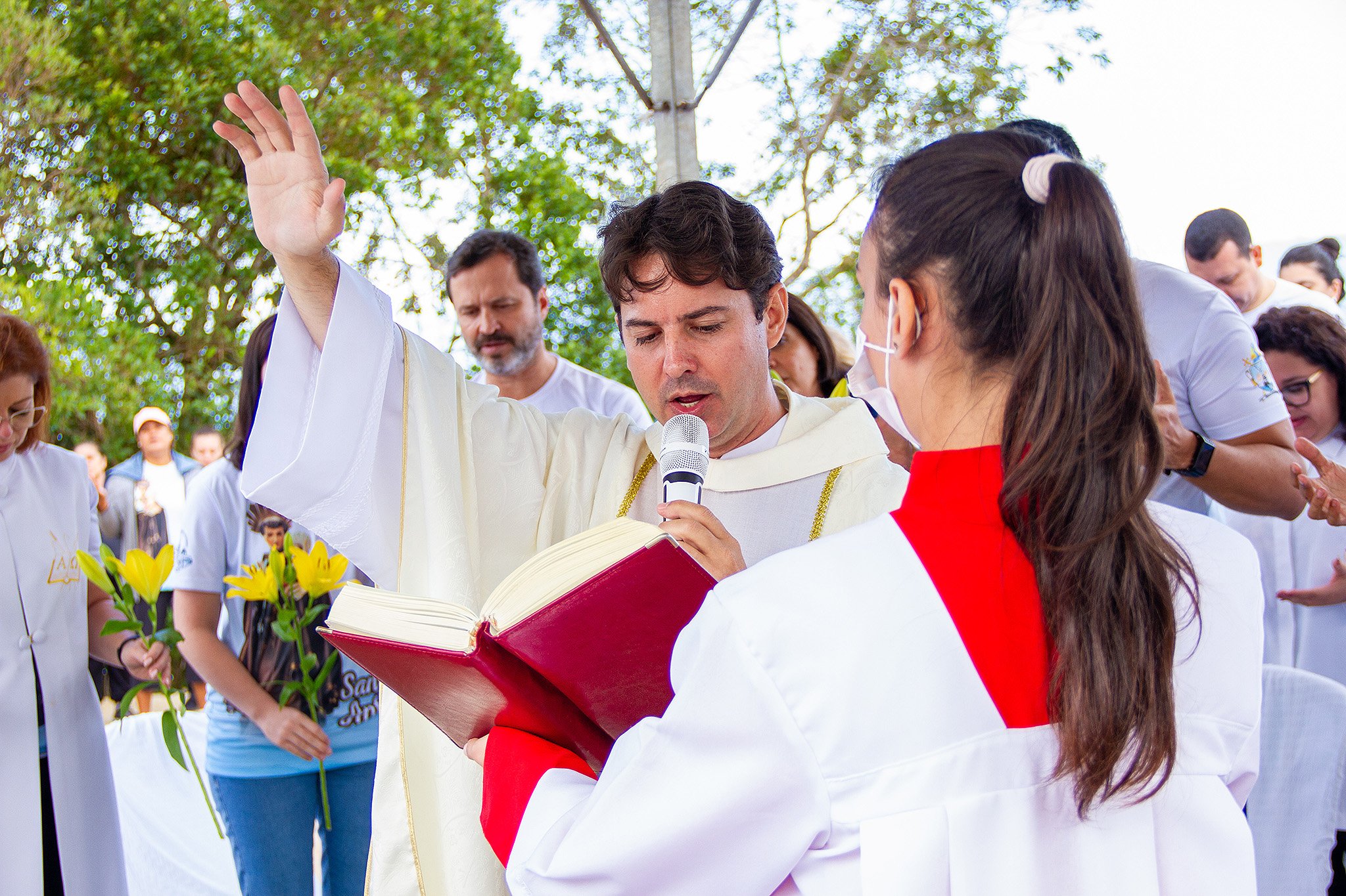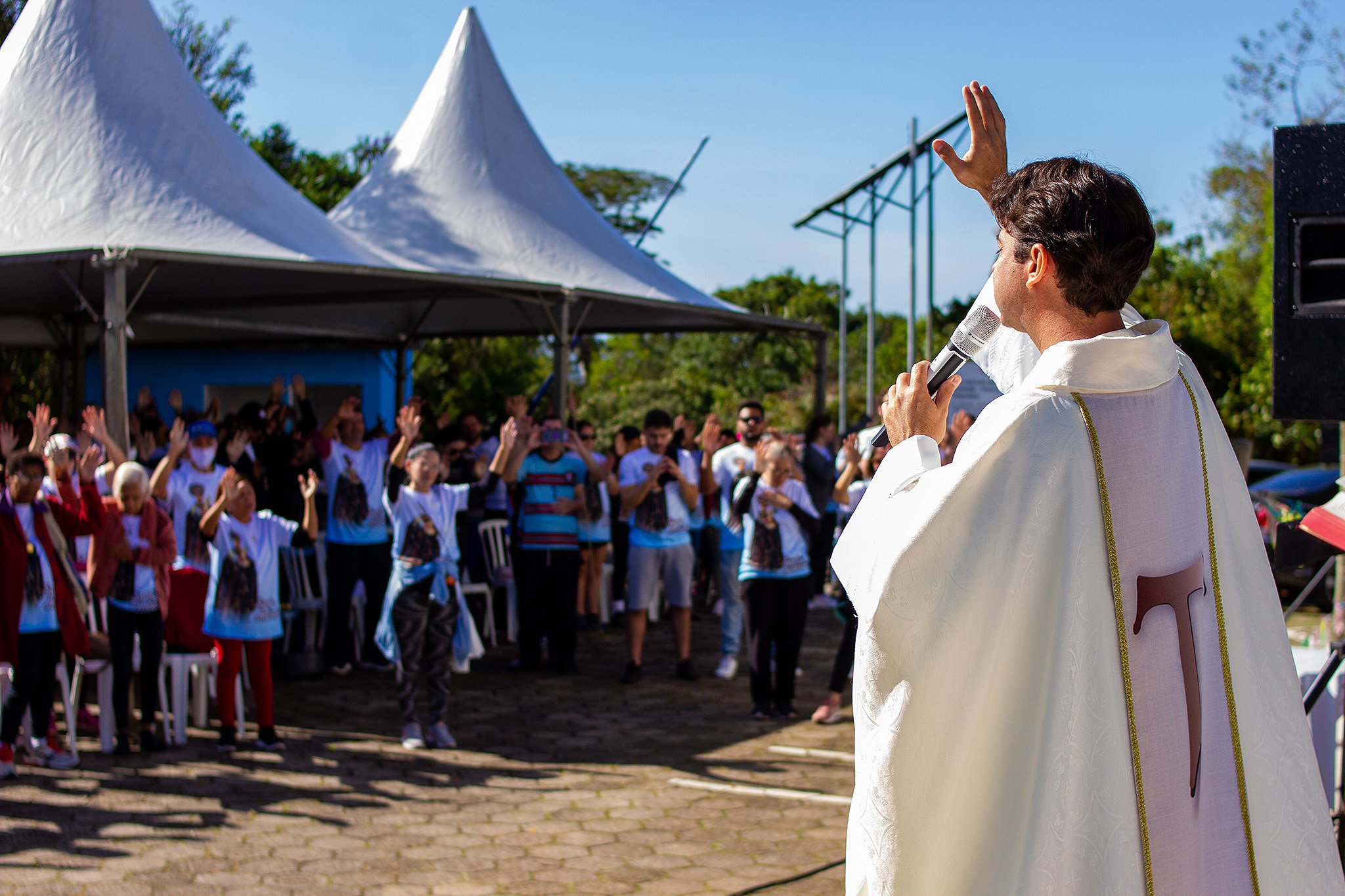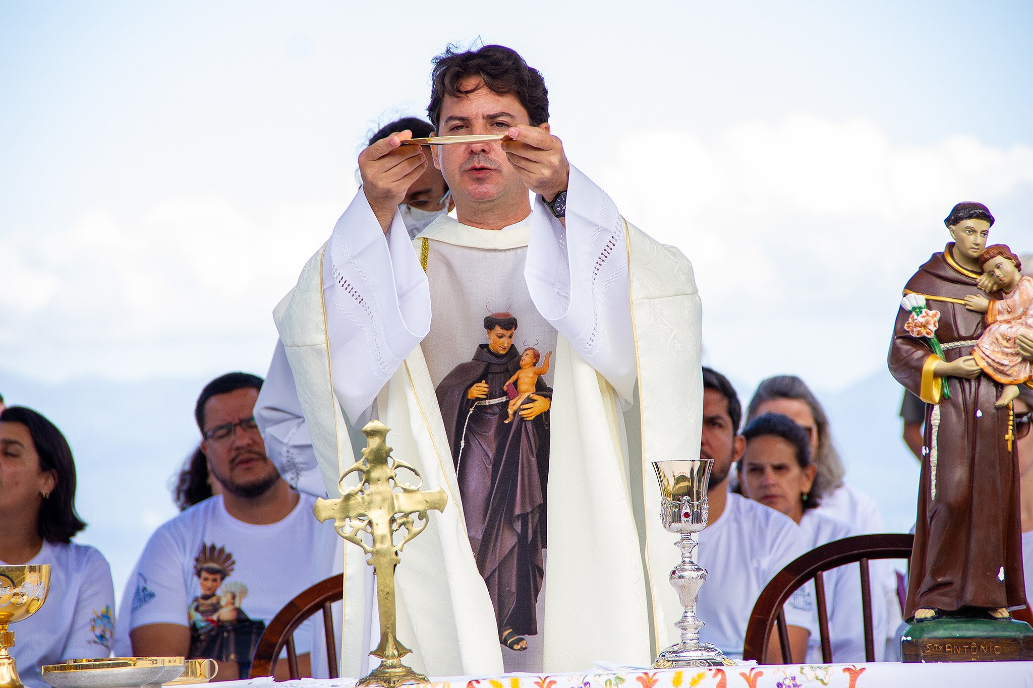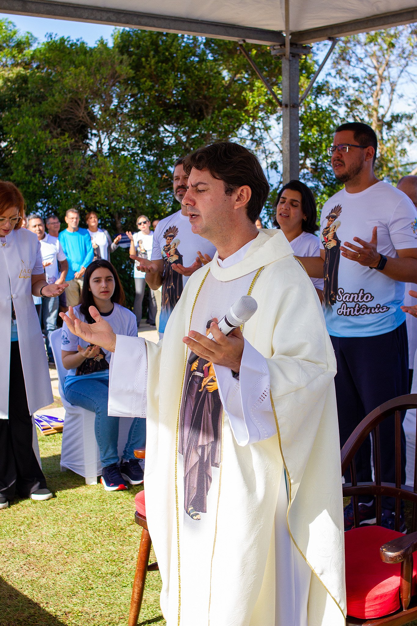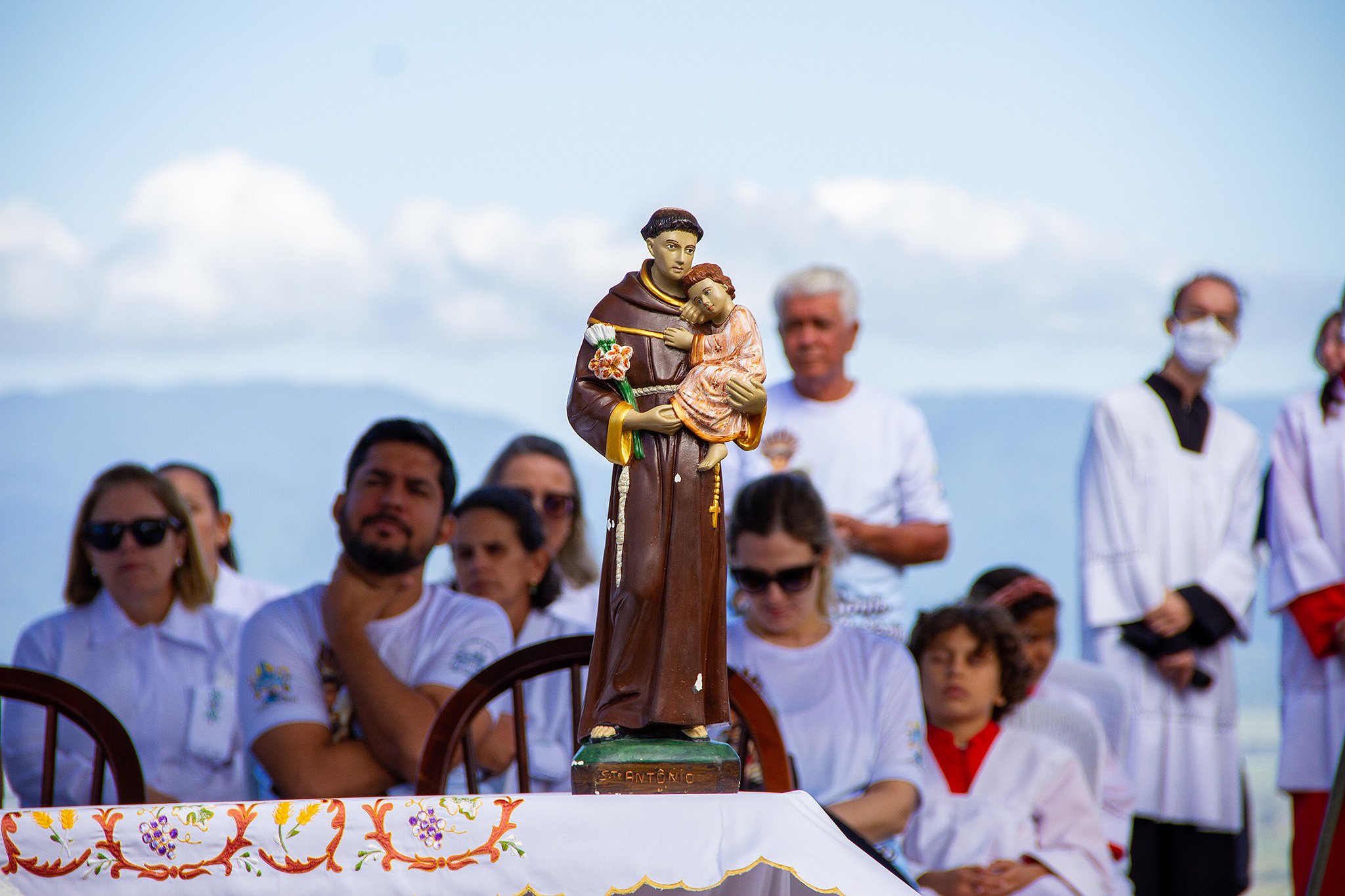 Centenas de devotos participaram da Caminhada ao Morro de Santo Antônio neste domingo (05/06). Aos pés do padroeiro de Caraguatatuba, eles encerraram a peregrinação com uma Missa Campal, presidida pelo reitor do Santuário, Padre Beto.