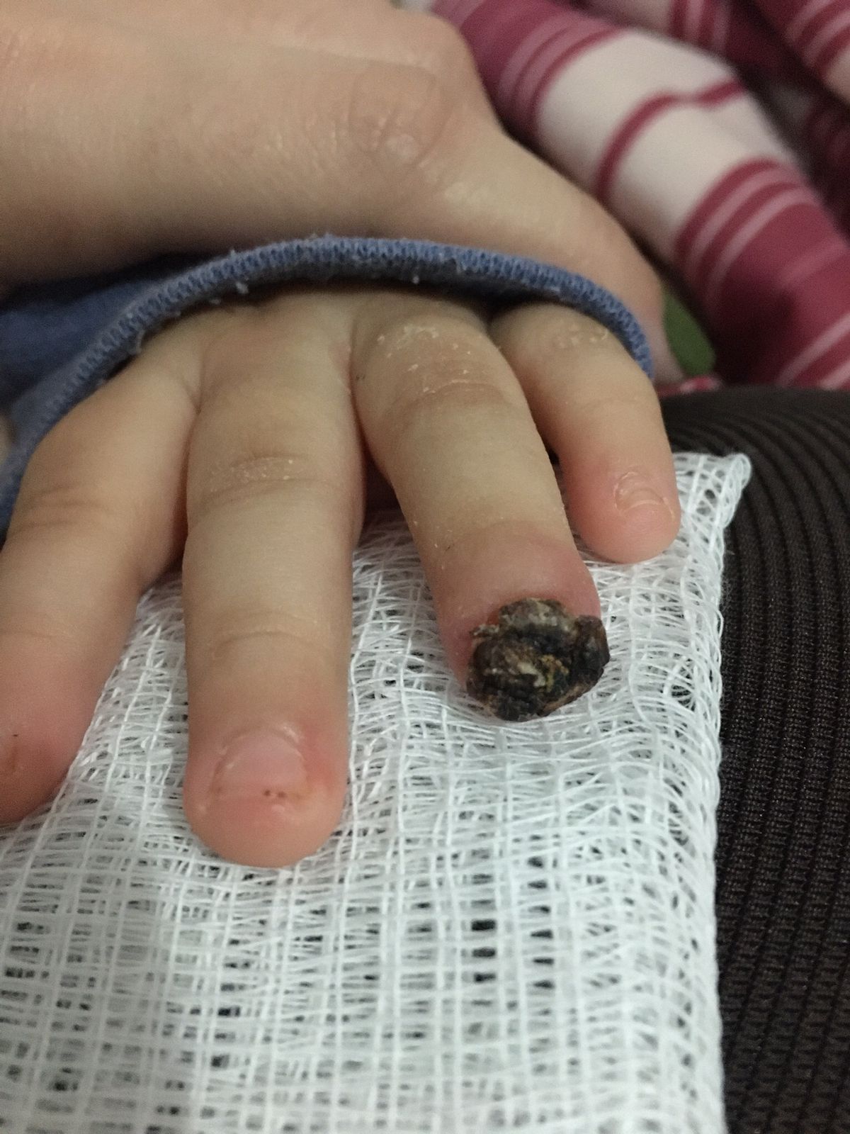Após ter o dedo cortado pelo móvel da casa (esse da foto), a mãe do menino, Letícia de Andrade, decidiu levar o menino para o hospital. “Ele sentou no móvel que estava ao lado da cama e o mesmo caiu em cima dele, assim que levantei o móvel vi o sangue jorrar, e na mesma hora vi que a ponta do dedo, junto à unha, havia permanecido na ponta do móvel”, conta Letícia.