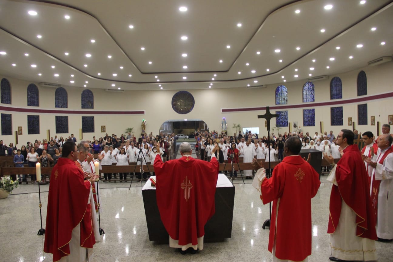 A Missa foi presidida pelo Bispo Dom José Carlos e concelebrada pelos seguintes padres presentes: cura da Catedral, Pe. Vladimir Ferreira, presbítero assessor dos Diáconos, Pe. Alessandro Coelho, Pe. Moisés do Nascimento que foi acolhido como novo Vigário da Catedral, Pe. Carlos Lemos, e o Diretor da Escola Diaconal São José de Anchieta, Pe. Altair dos Santos.