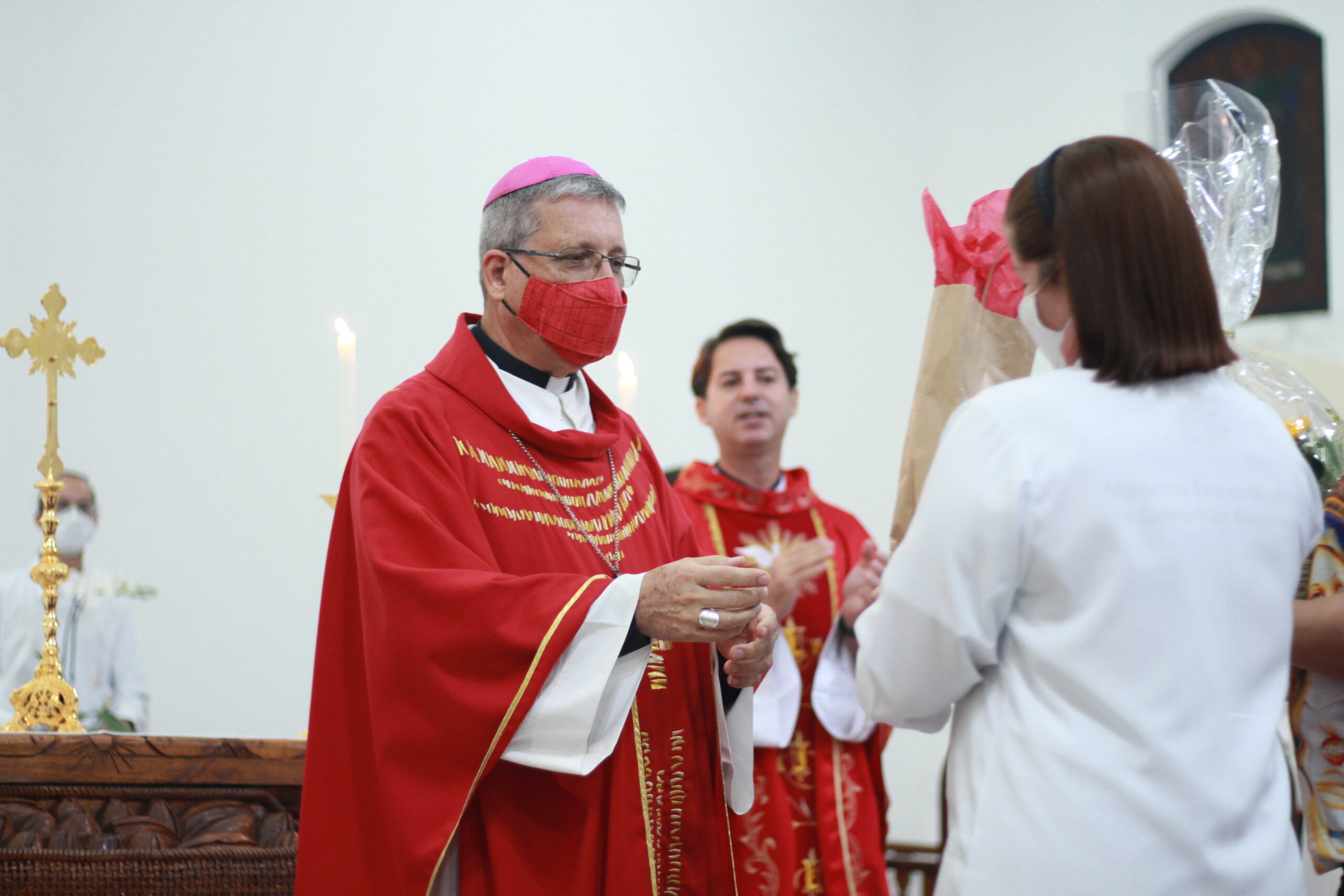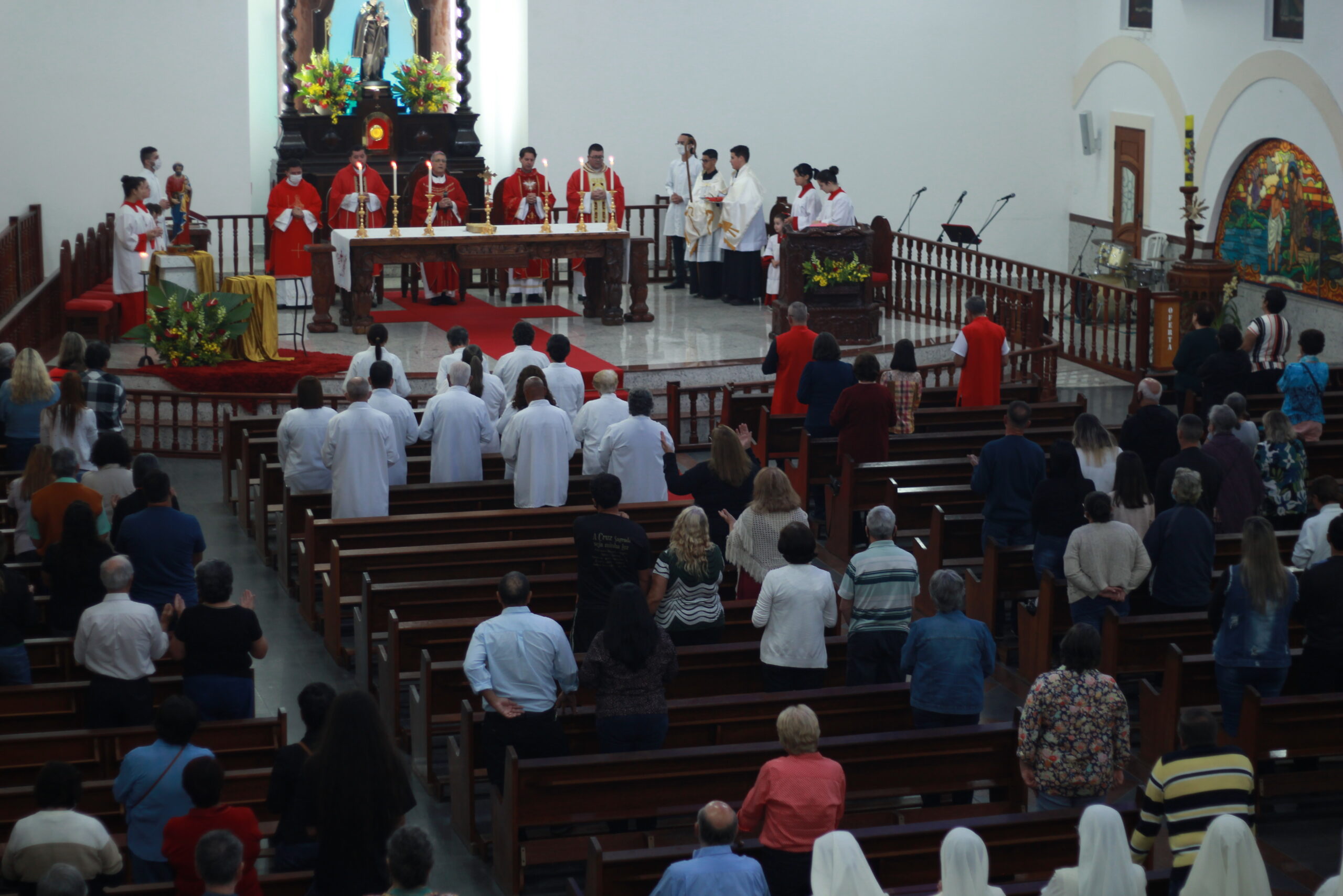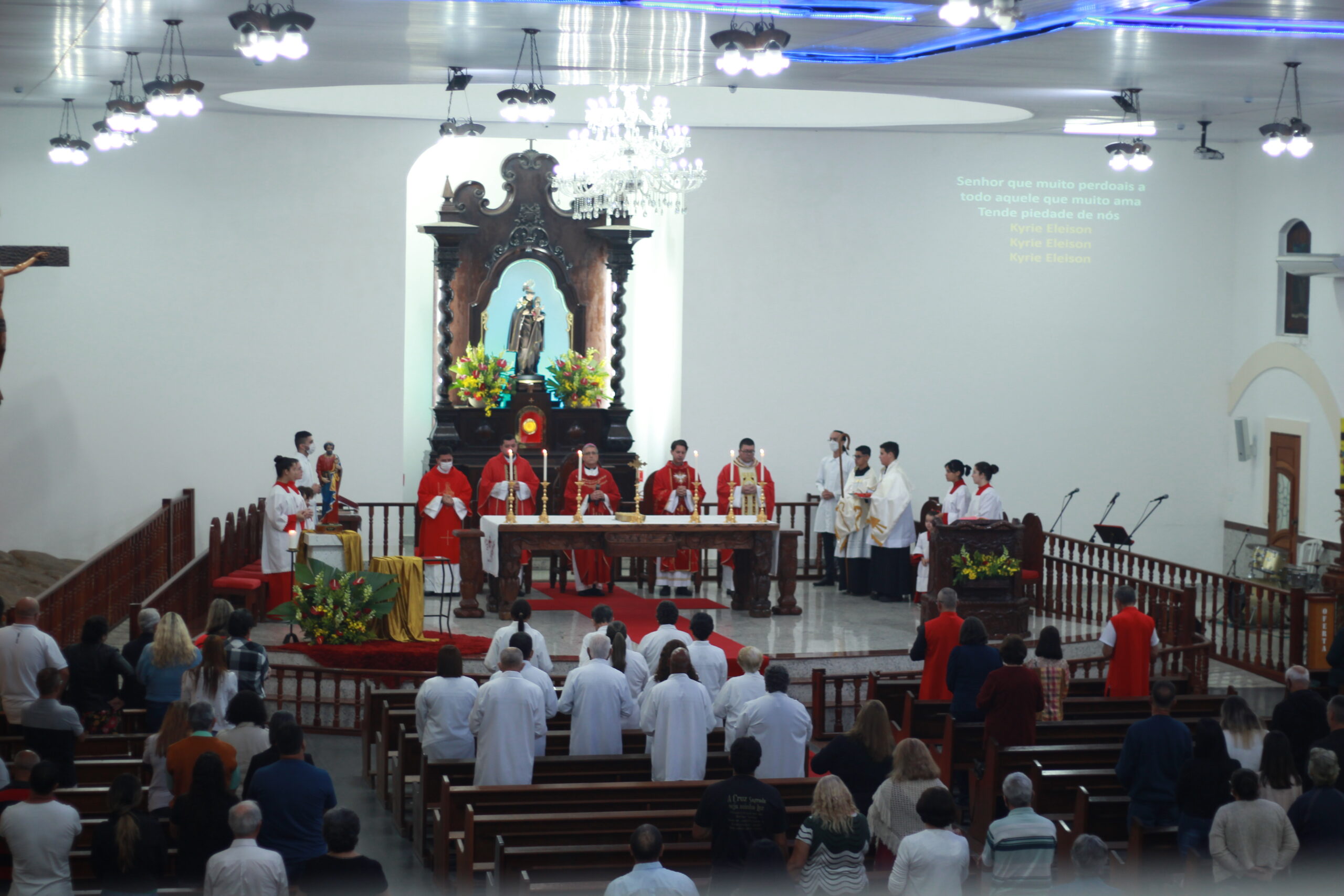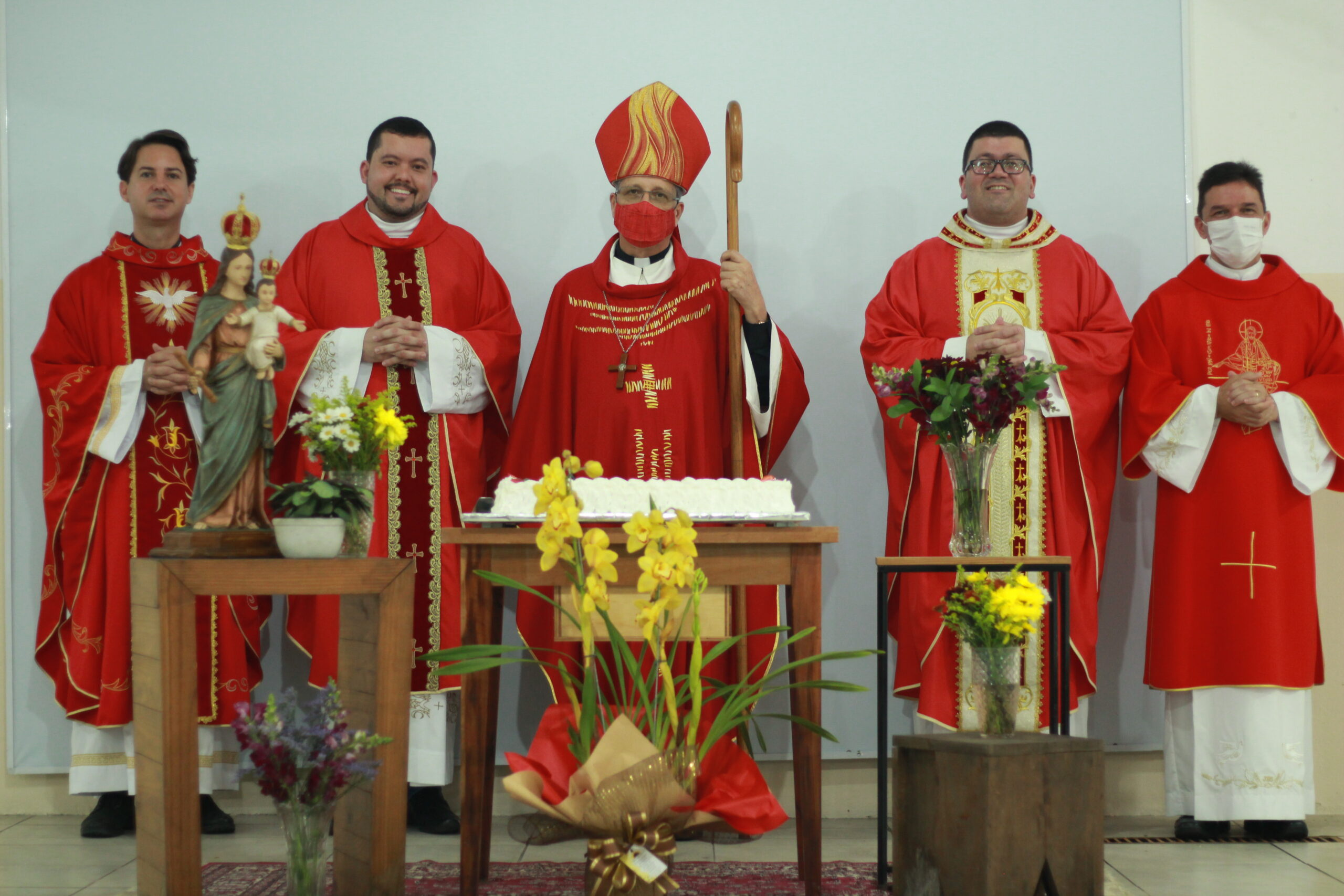 O Bispo Diocesano, Dom José Carlos Chacorowski, celebrou 42 anos de ordenação presbiteral, no último sábado (02/07). A data especial foi comemorada com uma Santa Missa Solene e uma confraternização no Santuário Diocesano de Santo Antônio. Após a celebração, houve a apresentação do novo vigário do Santuário, Padre Eduardo Toledo, que também assumiu o cargo de ecônomo da Diocese em maio. O Padre Beto também celebrou cinco anos à frente do Santuário, dois como pároco e três como reitor.
