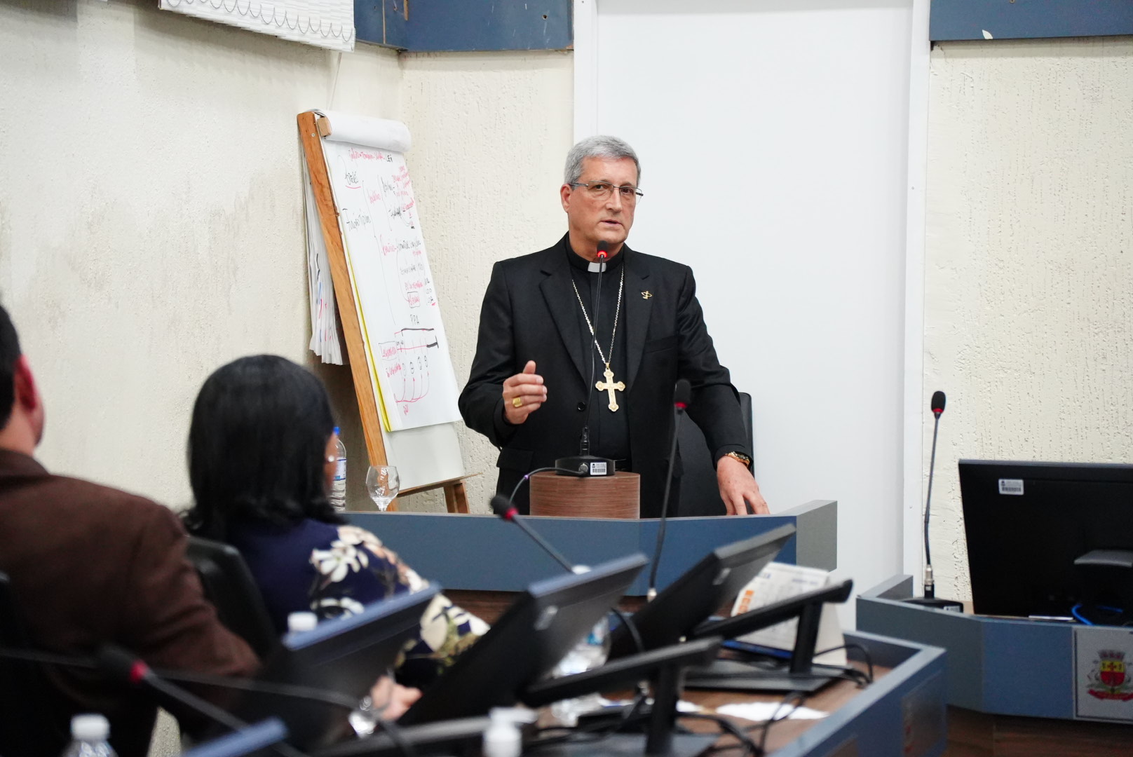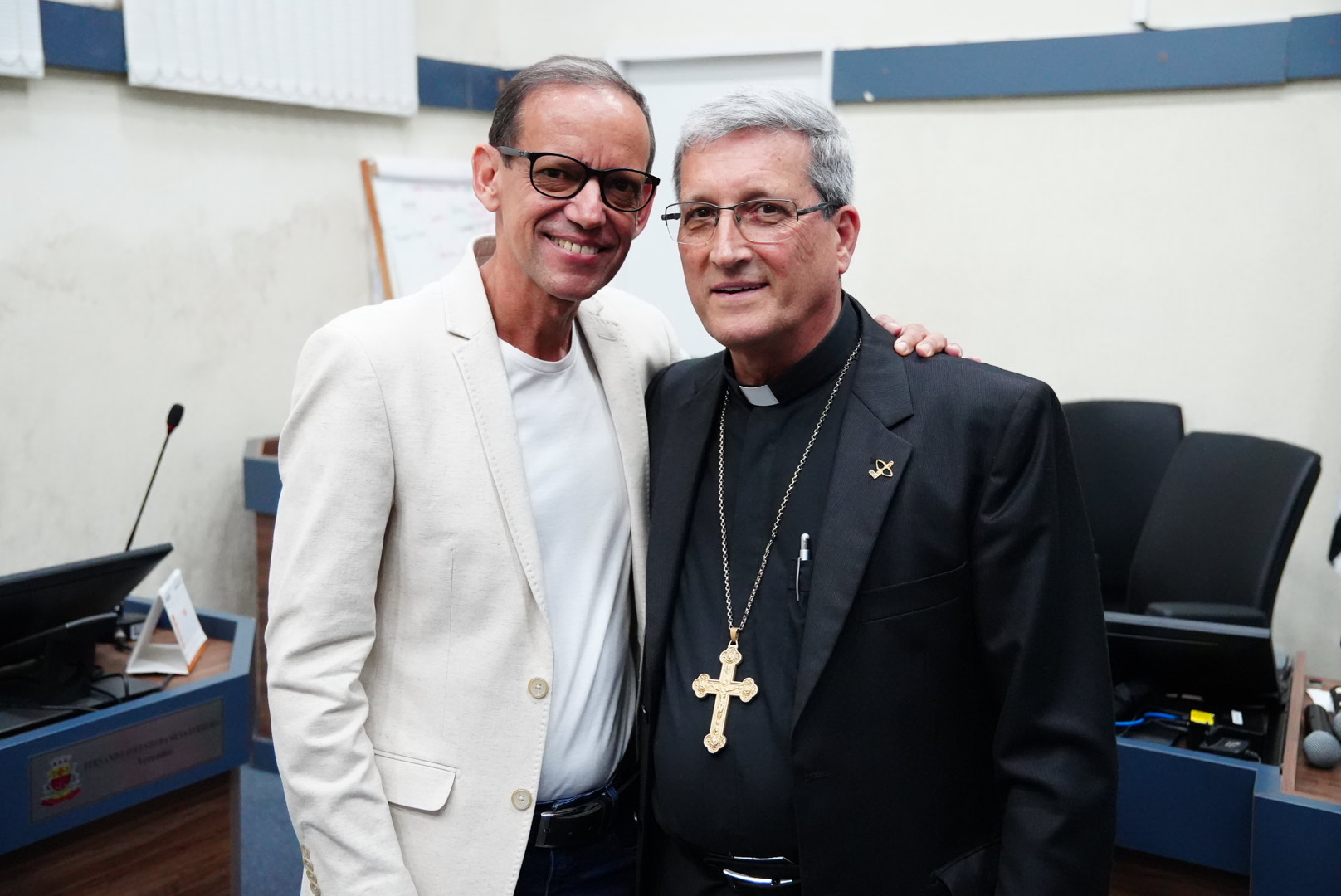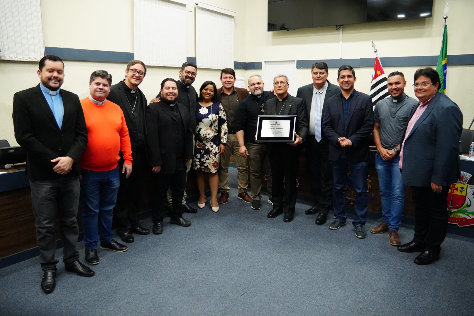 Com júbilo Dom José Carlos Chacorowski recebeu na noite de ontem (31), pelas mãos do Vereador Oswaldo Pimenta de Mello Neto (China), o título de Cidadão Caraguatatubense em Solene Sessão na Câmara Municipal. Estiveram na solenidade o Prefeito de Caraguatatuba Aguilar Junior, os Vereadores Jair, Cristian Bota e Tato Aguilar presidente da câmara, fiéis de nossa Diocese e parte de nosso Clero Diocesano.