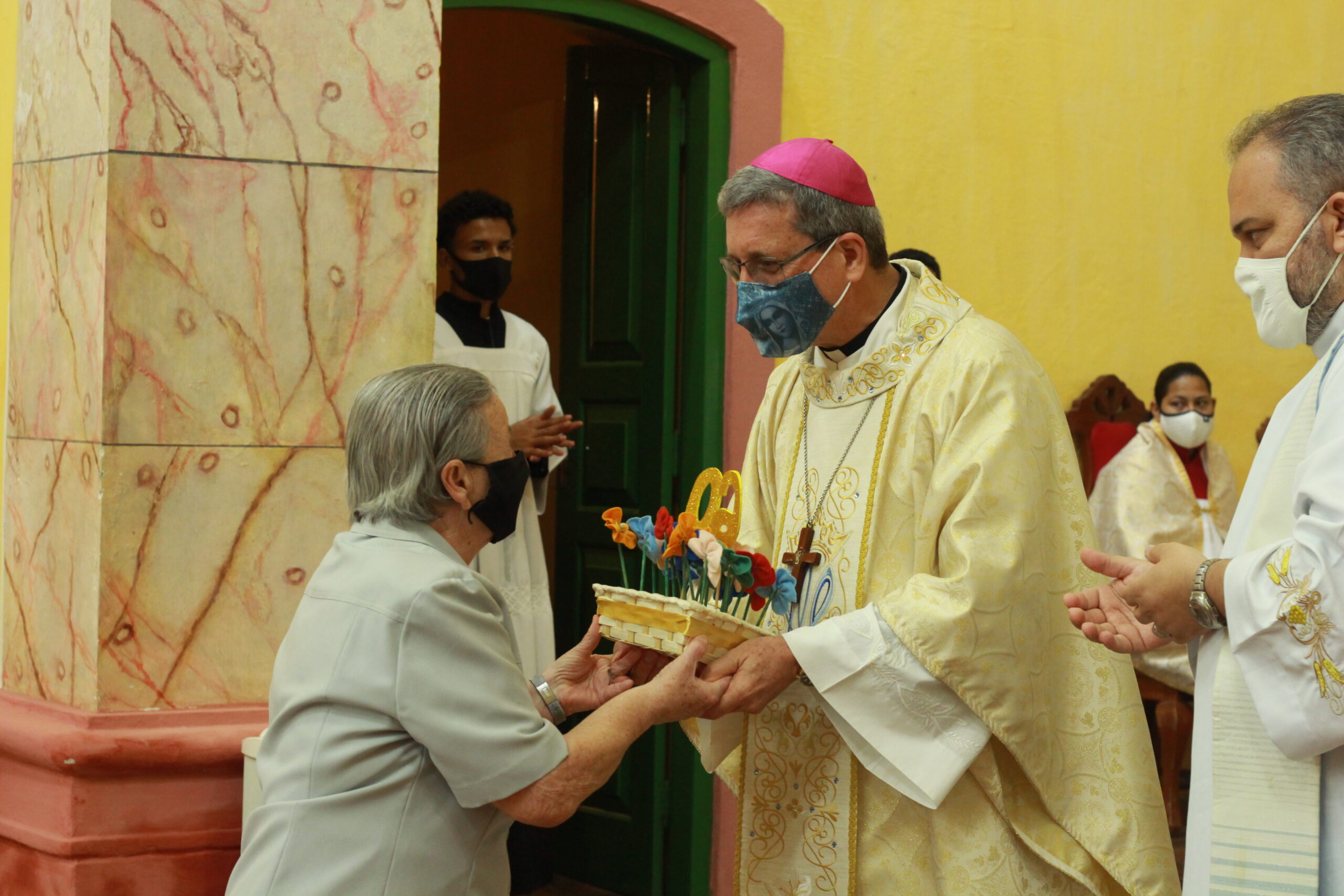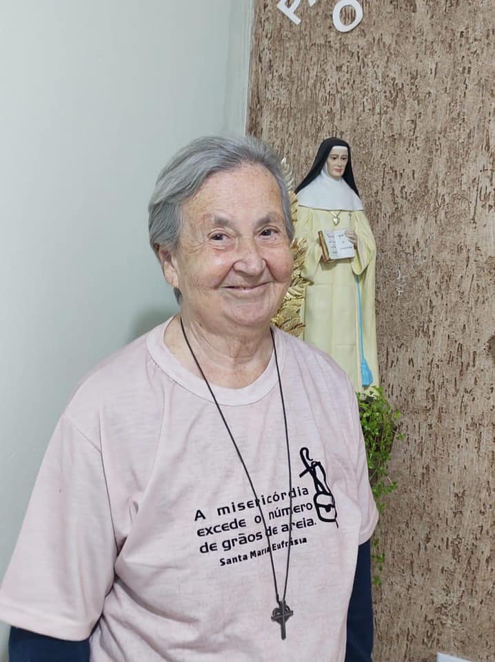 No ano passado, a irmã completou mais de 60 anos de vida religiosa. Para celebrar suas bodas de diamante, a Paróquia São Sebastião realizou uma linda homenagem para ela bem no dia dos religiosos. Familiares e amigos dela da Congregação Irmãs do Bom Pastor participaram do momento.