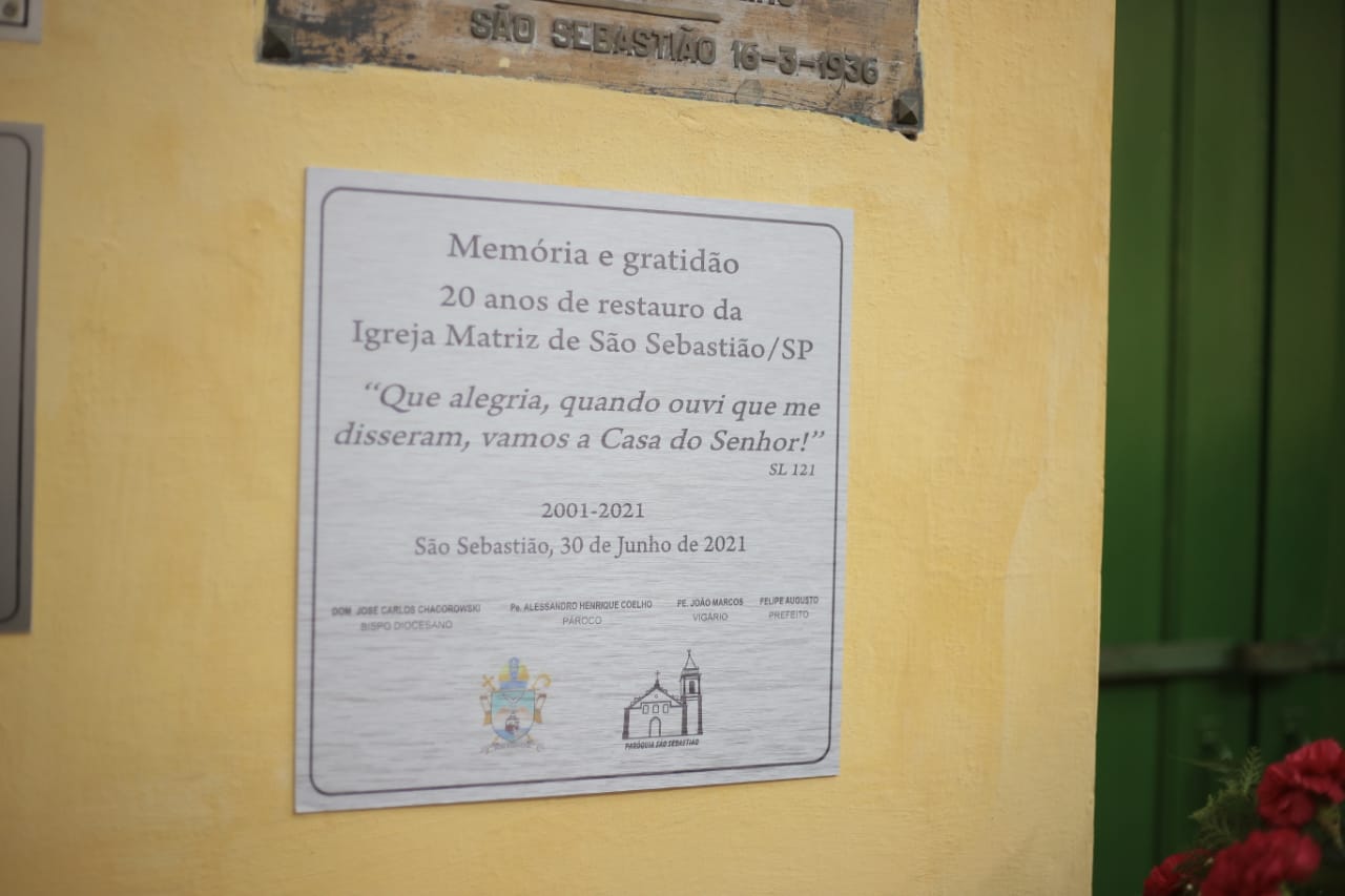 O Padre Alessandro Henrique Coelho, atual pároco da Matriz de São Sebastião, celebrou na quarta-feira, 30 de junho, uma Missa comemorativa dos 20 anos de restauro da Igreja, que é uma das mais antigas do Litoral Norte de São Paulo.