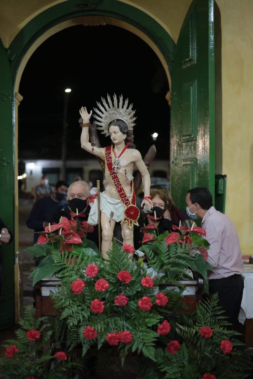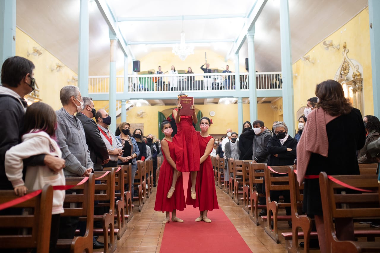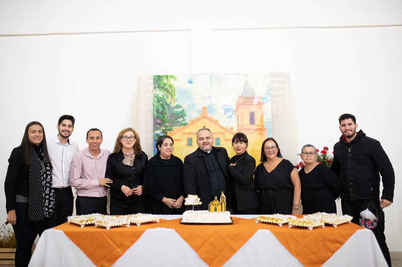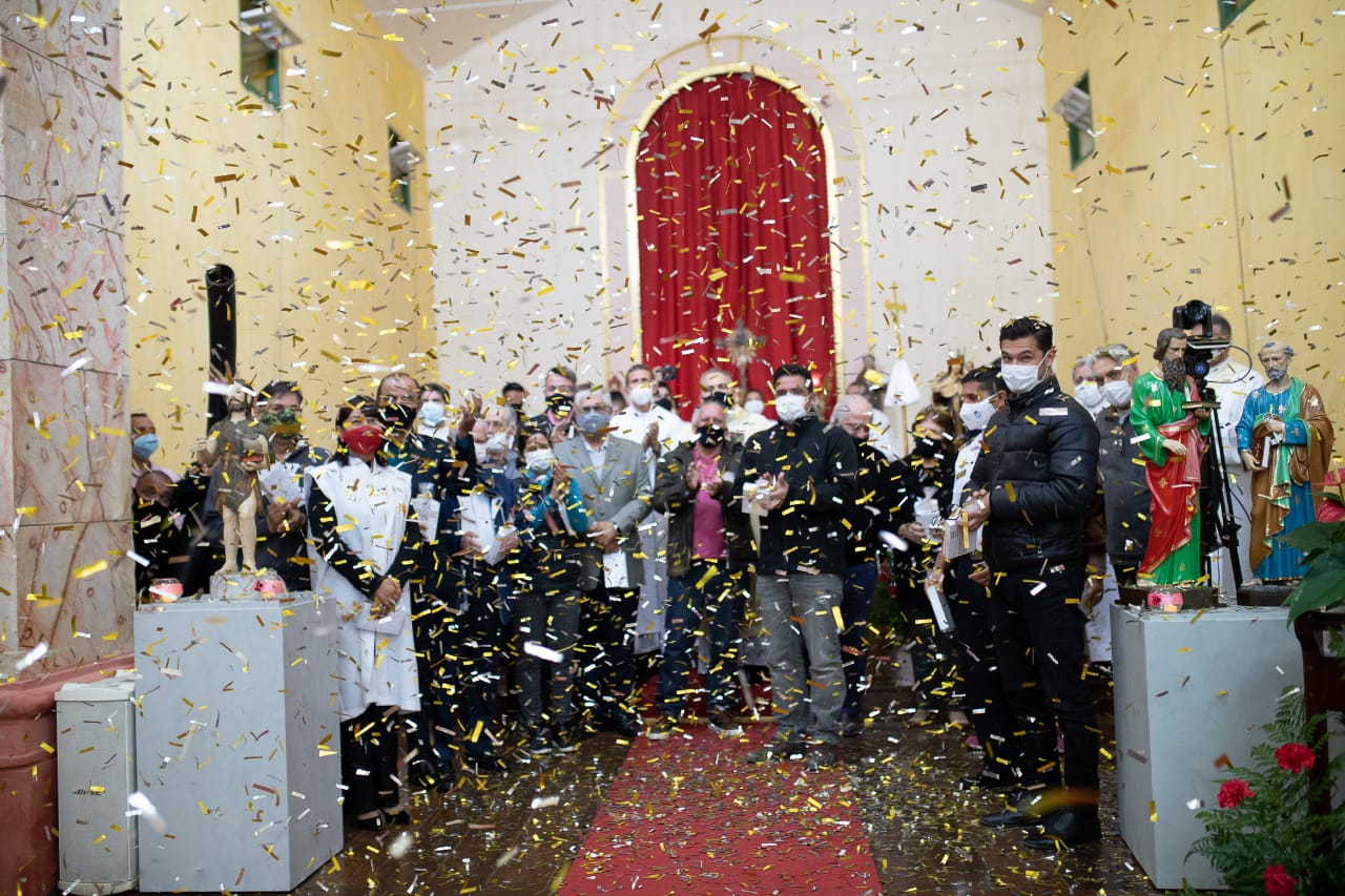 Ao som do hino de São Sebastião, o Padre declarou aberta a exposição com os melhores momentos do Restauro. Também participaram os Padres Douglas Franco, Wilhem e Elmiran, ex-pároco.
