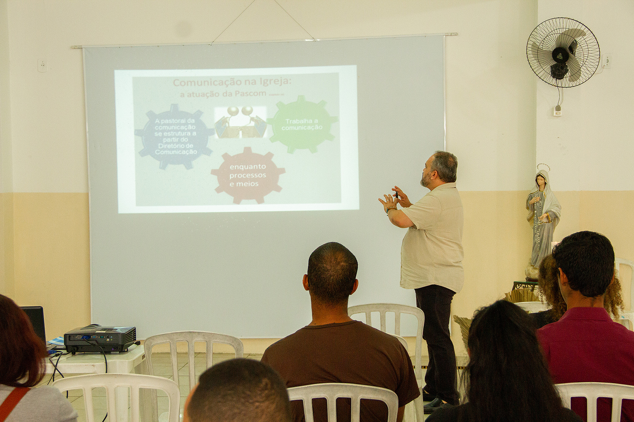 A líder do setor de Caraguatatuba, Laura Cantagesso, ficou responsável pela dinâmica de criatividade. O coordenador da Pascom da Paróquia Sagrado Coração de Jesus, Douglas Nascimento, apresentou uma oficina sobre campanha nas mídias sociais.