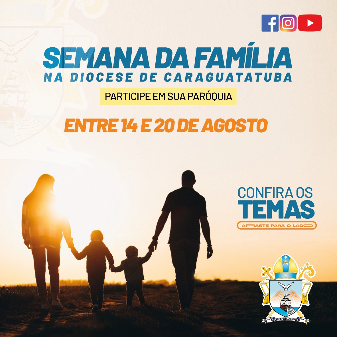 A Semana da Família acontecerá na Diocese de Caraguatatuba entre 14 e 20 de agosto. Por  isso, o Padre José Adalberto Vanzella, reitor do Santuário de Santo Antônio, preparou um subsidio para todas as comunidades e Paróquias seguirem. Os encontros relacionados ao evento estão disponíveis neste material para download.