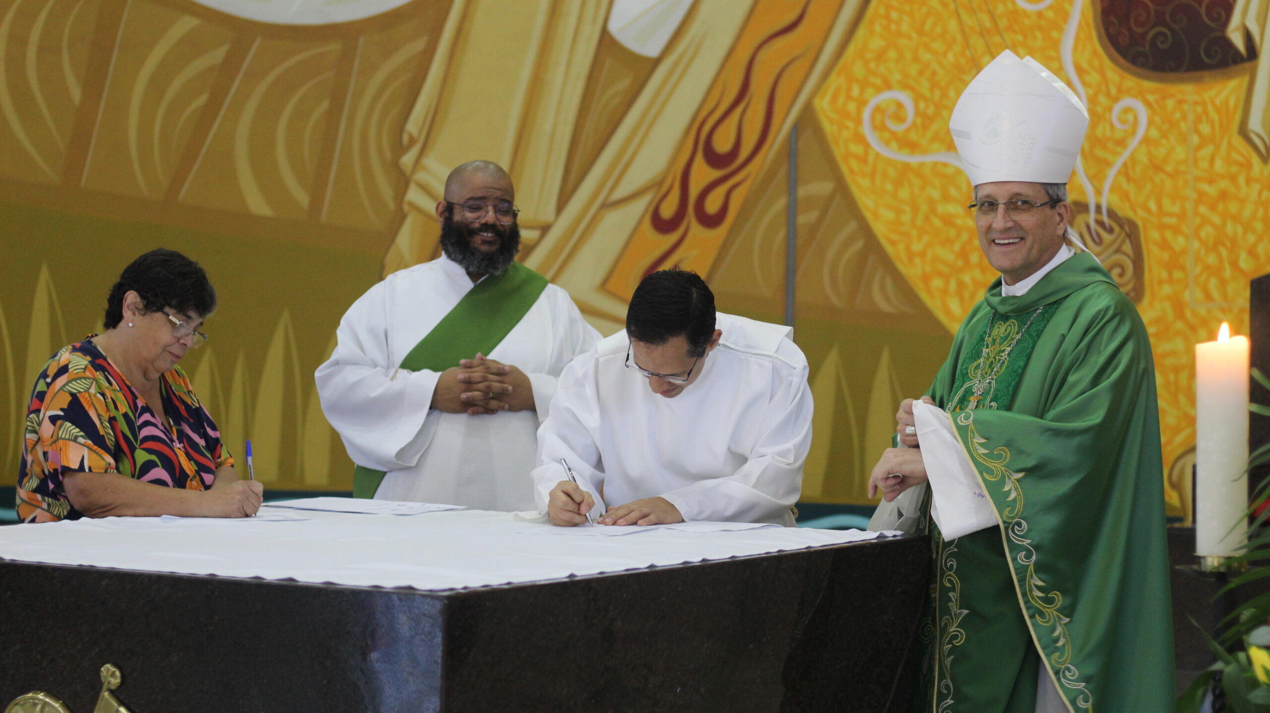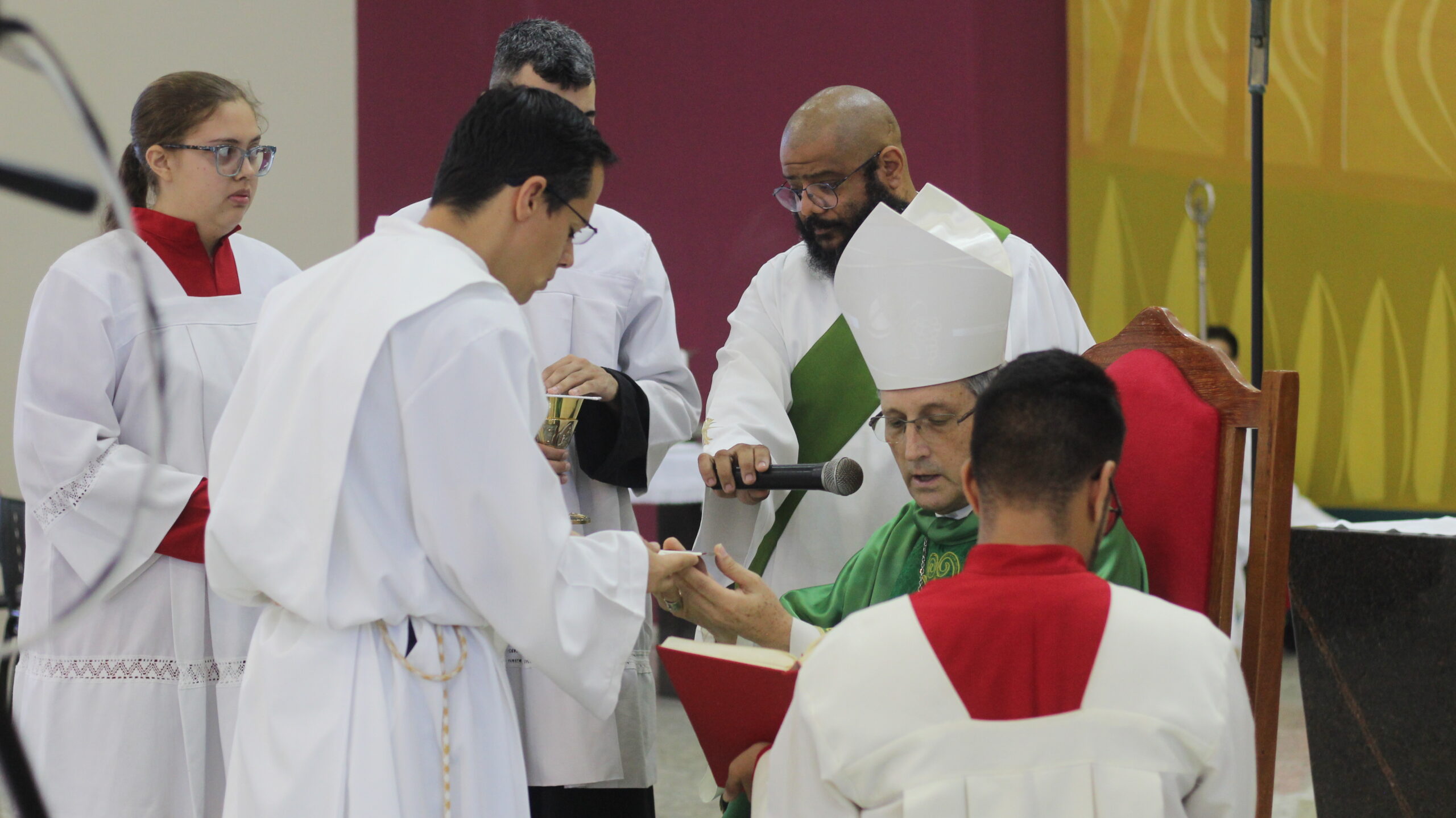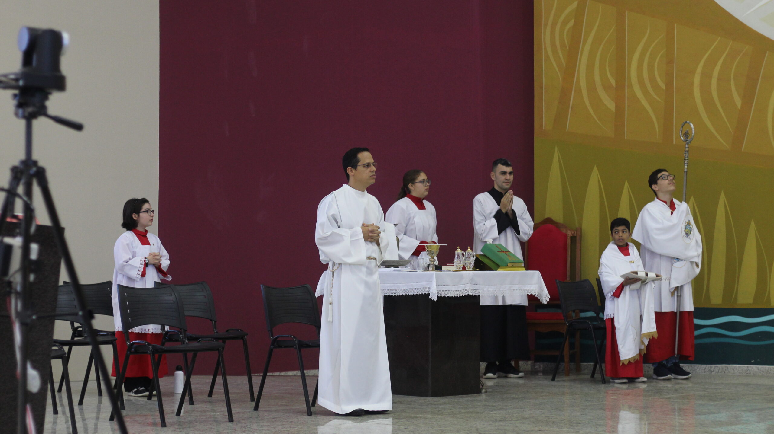No dia 8 de Outubro, o Seminarista Mateus Delgado Cunha deu mais um passo rumo ao sacerdócio onde recebeu a instituição do ministério de Acolitato que é dado pela Igreja aos seminaristas para auxiliarem o sacerdote e o diácono. É sua função, portanto, cuidar do serviço do altar, auxiliar o Diácono e o Sacerdote nas ações litúrgicas, sobretudo na celebração da Missa; distribuindo, como ministro extraordinário, a Sagrada Comunhão. Rezemos por está nova etapa da vida do Seminarista Mateus e para que desperte mais vocações em nossa Diocese!